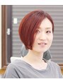 鮮やかなプライムオレンジのカラーが決め手のスパイシーなショートスタイルです。その日の気分でカールを調節し、カジュアルでもモードでも幅広いファッションに溶け込むスタイルを☆長めのバングで可愛くなり過ぎない大人さを醸し出します。