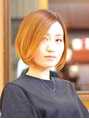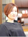 分け目で見える印象が変わるようにハイライトを配置。ハイライトとカラーはオレンジ系ベースでショートでも動きのあるスタイルに