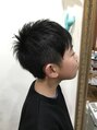 アウトラインはスッキリ短めにし、前髪はアシメにすることでシンプルなソフトモヒカンをおしゃれに仕上げました。年代問わず人気のスタイルです。