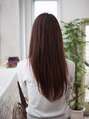 毛先に向かってナチュラルにレイヤーを入れたロングスタイル。トップにはハイレイヤーが入っているのでふんわりした仕上がりになっています。前がみは少し広めにラウンドさせているのでサイドにかけてのつながりも良く、前がみを伸ばしていきたい方におすすめ