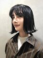 切りっぱなしのボブ。まとまり重視で作っております。カラーはハイライトがたくさん入っており、ブルー系アッシュで染めてます。