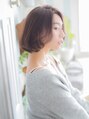 【スタイルの特徴】シンプルなボブもセンターパートにすることでフェミニンな大人っぽい印象に。前髪をつくることで可愛い印象にすることもできます。カラーリングはイルミナのヌードグレージュで出す透け感が◎