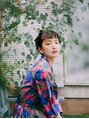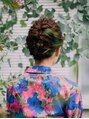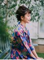 全体をなみ巻きします。ざっくり分けとってくるりんぱをします。アンダーは逆巻きにしてシニヨンを作ります。カジュアルにもエレガントにも多用できるスタイルです。