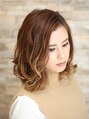 前下がりの切りっぱなしボブ。巻いても華やかさを表現できるように、お顔まわりと表面にレイヤーを入れて動きやすくカットしています。