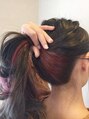 巻いたりアレンジしたりするときにカラーが出てくるようにデザインしたインナーカラー。 ポイントカラーなのでダメージも少なくイメージチェンジできますよ!