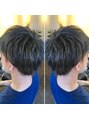 カットは膨らみやすい髪質をしてるのとあまりスタイリングをしないようなので、何もしなくてもデザインになるようにカットしてます。 カラーは一度ブリーチで赤味を無くしてから濃いめのアッシュグレーをのせてます。退色もキレイにたのしんでもらえます^_^