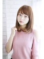 毛先に重さを残したミディアムロング。空間をあけることで毛束がゆれるようにしてあります。前髪は幅広めのパッツンバングでちょっとモード感をプラスしました。やわらかなラベンダーをのせたモーブカラーでふんわり感を☆