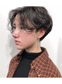 前髪長めのショートbobスタイルです。カラーは赤みが全くないグレージュ。