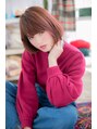 斜めバングと内巻きワンカールのノームコアなナチュラルボブ。清楚でフェミニンな雰囲気のスタイルにパンチの効いたレッド系カラーをオンすることで、個性的でスポンテニアスな甘辛ミックスボブにイメチェン。フリンジバングと合わせて旬顔に。耳かけも◎