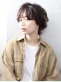 襟足が少し長めのショートスタイルに毛先のカールとウェーブがミックスされたパーマがカジュアル感を出しています。