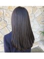 ロングスタイルですが毛先に少しのグラデーションとトップにレイヤーをいれてワンカールすると可愛いスタイルにカラーは暗めのグレー系の色味で落ち着いた雰囲気とこなれ感を