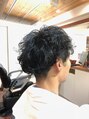 まわりを浅めのツーブロックで整えたパーマスタイル