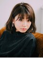 髪の色が暗めですが、毛先が一番明るいグラデーションカラーです。パーマをゆるくかけてくせ毛風のカール感を出しました。前髪は薄めバングで大人っぽく!!アレンジする時は顔まわりの毛を少しずつ束で出してあげるとおしゃれ感が増します。