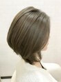 前下がりのセミレイヤーです。トップに高さが 出るので 丸みが 出てシルエットが 綺麗です。カラーは 明るくなってたので 暗髪で。アッシュ系で オリジナルで混ぜてます。 暗いけど 日に当たると 透明感が あります。