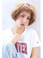 可愛らしさを前面に出したガーリーショート。パーマによる外国人風のくせ毛質感とオン眉バングがキュート。明るめオレンジベージュカラーで透明感と元気感を出した旬の個性派ガーリーショートです♪