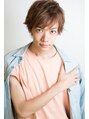 ななめバングのアシメショートで無造作カッコイイモテ髪スタイル。甘めのブラウンで優しい雰囲気に。スタイリングは毛先に動きをつけてハネ感を出しました。
