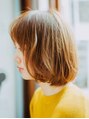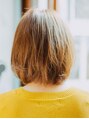 全体的には後ろにウェイトをもたせ表面の毛束に動きをだしたエアリー感のあるボブスタイル。バングを透けさせ、顔まわりにリバースの毛束を作ることで大人可愛い印象に。