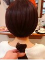 カットは女性らしい丸みを出してマッシュボブに。カラーは落ち着いたアッシュ系のカラー。