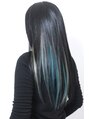 - 内側の一部のみブリーチ後、全体は濃いブルーブラックに、さらに2色のインナーカラーを♪