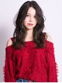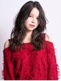 甘くなりすぎない抜け感のあるウェーブでお洒落さをプラスしたロングスタイル。センターパート×ひし形フォルムで小顔感もアップします。