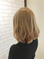 伸ばしかけにオススメ!ふんわりミディアム26mmのコテでワンカールして表面をミックス巻きをした簡単アレンジ!カラーはシアーベージュでオシャレハイトーンにしました