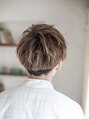 バックとサイドを刈り上げたマッシュ系ショート。動きがでるようにトップからレイヤーを入れているので、丸すぎずすっきり感のあるスタイルに。全体にランダムにハイライトを入れてさらに動きと束感を出しやすいようにしています。