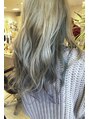 全体ブリーチして明るめのシルバーアッシュを入れますそのあとインナーにハイライト状に青、紫、緑を入れてます