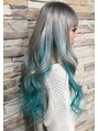 SILVERアッシュの地毛に大胆にクリアブルーの原色のエクステを付けてインパクトあるスタイルに♪