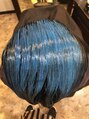 カラーミューズでブルーメッシュを入れてみました。今や定番化していますファイバープレックスでハーフハイライトを入れた後にカラーミューズのブルーを単品でオンカラーです。