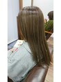 カラーは、ダブルカラーです。1回目→ブリーチで、太めのハイライトを入れています。2回目→アッシュ+ベージュ+グレイ 入れました!!大体3時間半ぐらいかかります!!髪の毛の状態によっては施術出来ない事もありますのでご了承ください。