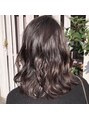 シンプルなロブスタイル 表面にのみすこーしだけに段をつけることにより巻き髪により動きを与える事が出来ますカラーは6レベルのダークグレーでツヤと透明感を演出