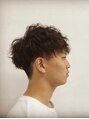 ツーブロック、襟足を刈り上げてマッシュベースにパーマを全体に強めにかけて無造作に動きを出したスタイルです☆