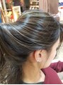 コントラストをはっきりつけたバレイヤージュです。毛先をあまり濃く染めずに、ブリーチの黄ばみを取り除きました。