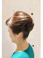 襟足5,6cm位でまとめられる大人の和装アップです。かっちりとまとめたスタイルでなく表面は少し引き出し、今風のルーズ感を表現し観劇、お友達同士の集まりにも似合うスタイルだと思います。