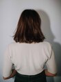 アゴラインのボブスタイルです。ワンレングスベースで一見思いスタイルに見えますがミドルセクションにレイヤーが入っていますので綺麗なシルエットはそのままで中は軽いいいとこ取りのスタイルとなっています。