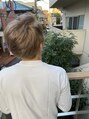 サイドからバックまで6ミリ~9ミリのグラデーションで刈り上げてカラーは明るめのライトベージュ。スタイリングはジェルワックスで整えて爽やかな印象のスタイルです。