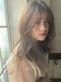 長めシースルーバングでニュアンスのある小顔ミディアムです。ベージュカラーでやわらかく女性らしさを最大限に引き出したスタイル。重めスタイルに