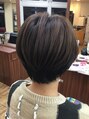 横は耳にかけれる長さで、後ろはスッキリと、落ち着きのある大人ショートスタイルです。