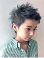 ザクザクカットしたベリーショートヘア。カラーはブリーチカラーの水色をベースに、スタイリングした時に効果的な位置に、ブルーのポイントカラーを入れました。