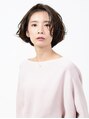 レイヤーで丸みを出したボブベース。膨らみやすい襟足や耳後ろは削り、バランスをととのえ、仕上げにウェットタイプのスタイリング剤で濡れツヤニュアンスをプラスした少しセクシーなショートスタイルです。【EARTH高円寺】