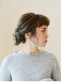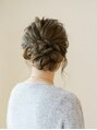 ハチ下耳前の髪だけ少し残し、低めのポニーテール。バランスよく全体に束感を引き出してから、結んだ毛先を三つ編みにして、ぐるっとまとめておだんごに♪サイドの髪の毛を、ねじって巻き付け、表面の束を引き出して完成です♪