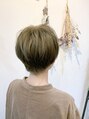 カジュアルなショートスタイル(^^)ダブルカラー、ケアブリーチを使いオリーブベージュをON♪毛先を軽くすけてる感じ(シースルー)を演出するカットです☆