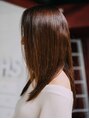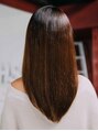 憧れストレートスタイルです。前髪は長めで大人っぽい印象に。カットはレイヤーカットで軽めにします。暖色系カラーでツヤ感を出します。自然なロングストレートスタイルは人気です。