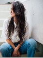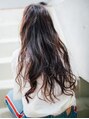 表面の見えるところに大きめの波ウェーブをつくり、バングは大人っぽさを出すためにかきあげました。レイヤーが入っているので、陰陽をつけ太めの束にすることで全体的に動きをだしています。