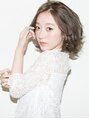 日に透けるような透明感を出したベージュ系カラーで軽さと、すんわり柔らかな質感のパーマでフェミニンに。カラーとパーマで質感を出しました。