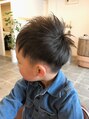 サイドのツーブロック、フロントのアシンメトリーでいっちょまえヘア。かっこかわいいっす(^^)<理容室><平岸>