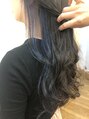 パッと見は黒髪ですが、インナーカラーに綺麗なブルーカラーが!インナーカラー初心者の方も挑戦しやすいですよね♪