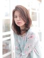 大人かわいいミルクティーカラーのミディアム。メルトカラーやイノセントカラーとの相性も◎斜めバングでうぶバングを演出。短過ぎないシースルーが大人っぽいです。伸ばしかけの方はエアウェーブやデジタルパーマがオススメです。パーマで小顔に変身♪