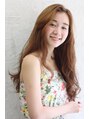 前髪長めのローレイヤーが入ったロングスタイルです。カラーは10レベルのベージュブラウン。バレイヤージュを入れても◎