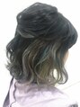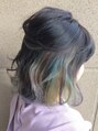 インナーカラーをユニコーンにして表面は暗めのアッシュでインナーを引き立たせ効果アップ。光によって色の見え方も変わるので毎日変化が楽しめます。